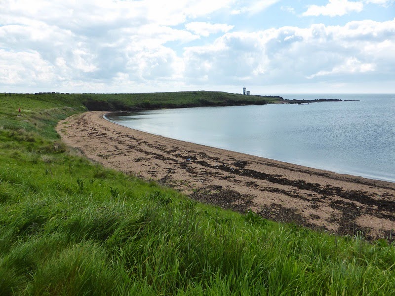 At Pittenweem we got chatting to one of the fishermen on his boat. Mick asked him what type of fish they caught and it took about 3 attempts before we understood what he said. "It's prawns we go for"! We bought a takeaway coffee from a little wharfside cafe at St Monen and watched the boaters' activity. They are lovely little villages with interest harbours and some nice houses. Finally at Elie we went to check out the "award winning" beach. Hmmm... not quite what we expected.
